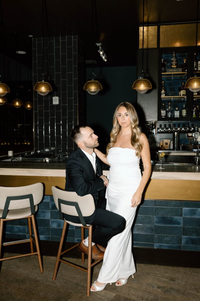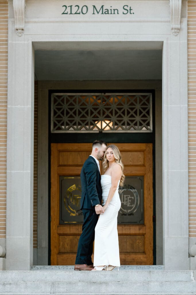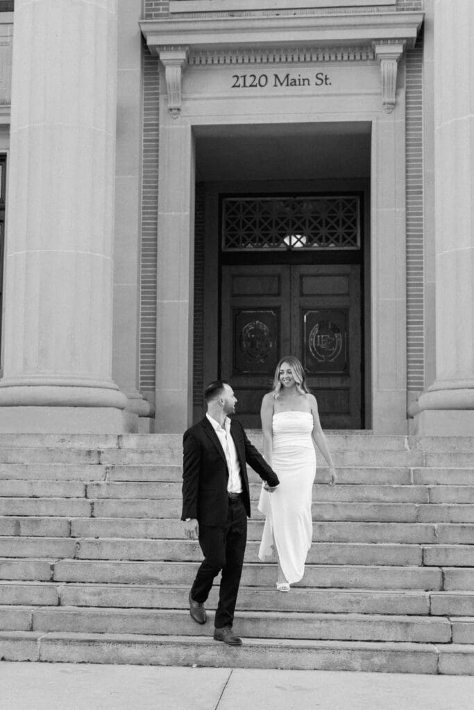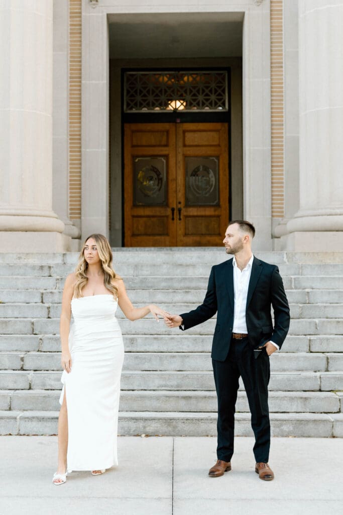 Morgan and Josh showed up looking like they were stepping onto the pages of a magazine. Their outfits brought a clean, elevated feel to every photo — the perfect match for the refined architecture and soft, neutral tones of downtown.