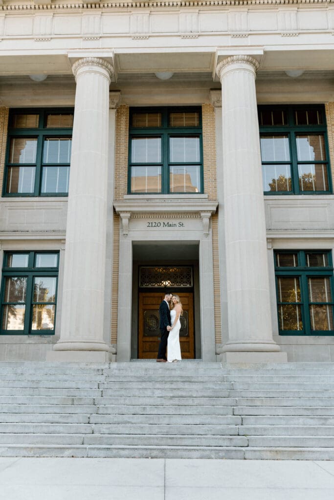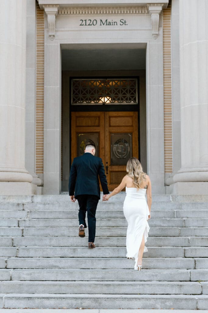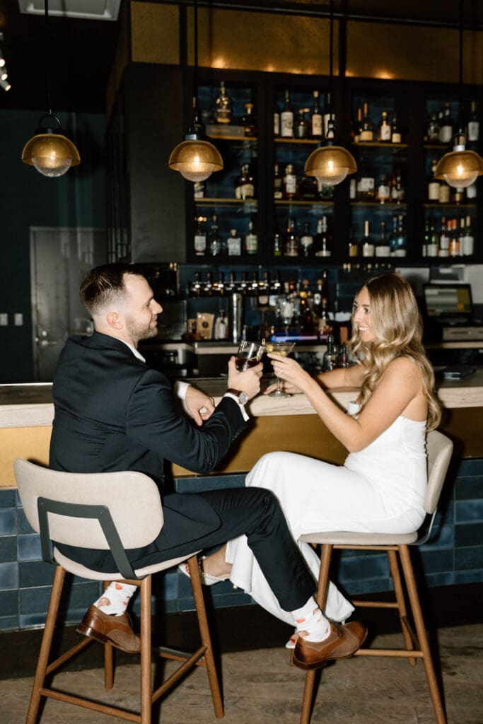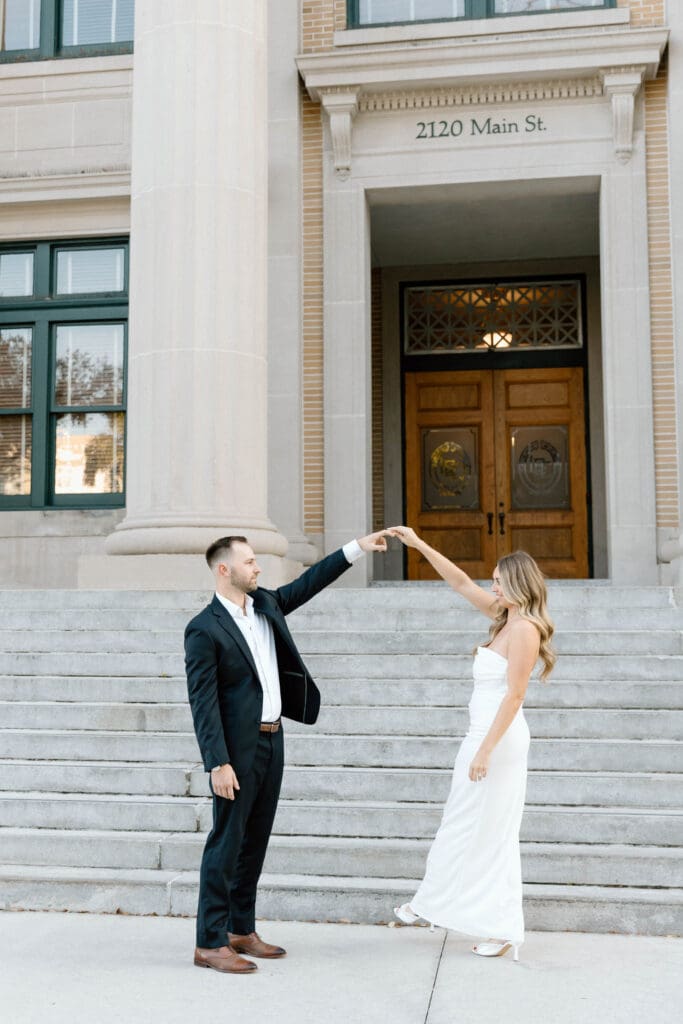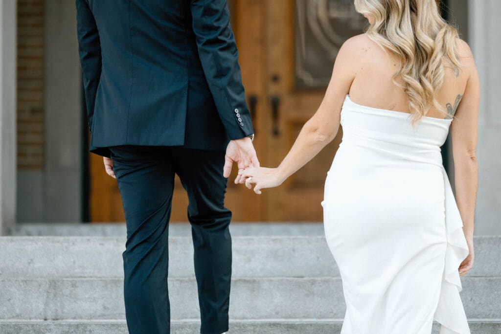 Morgan and Josh showed up looking like they were stepping onto the pages of a magazine. Their outfits brought a clean, elevated feel to every photo — the perfect match for the refined architecture and soft, neutral tones of downtown.