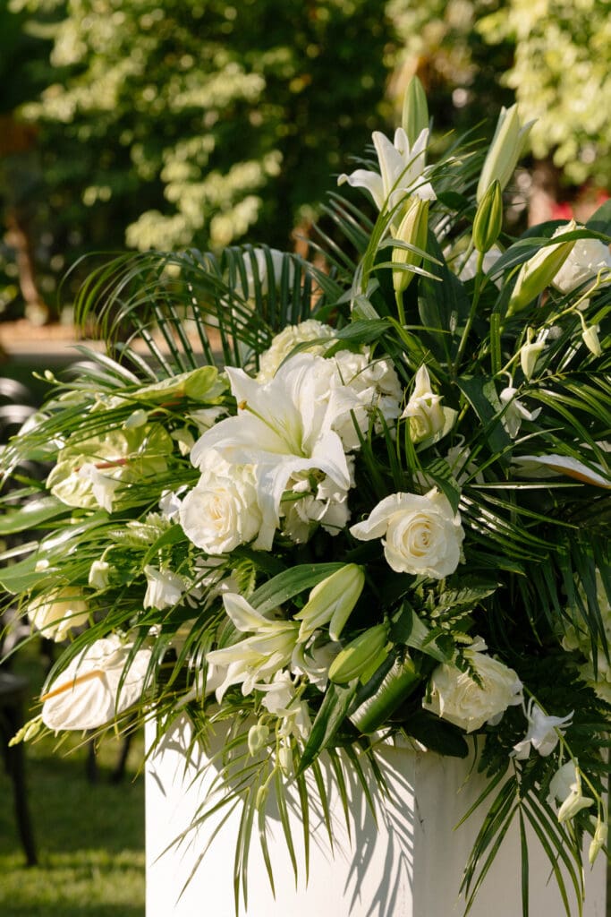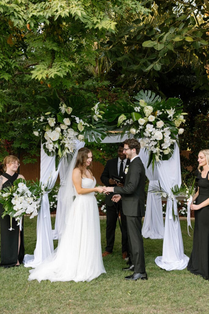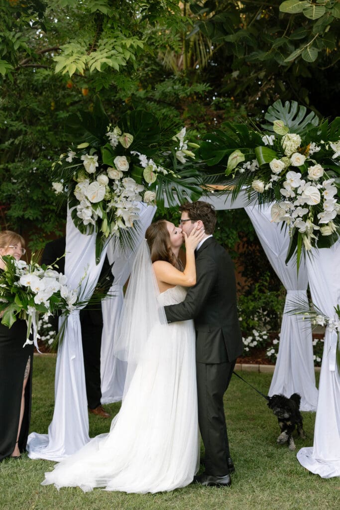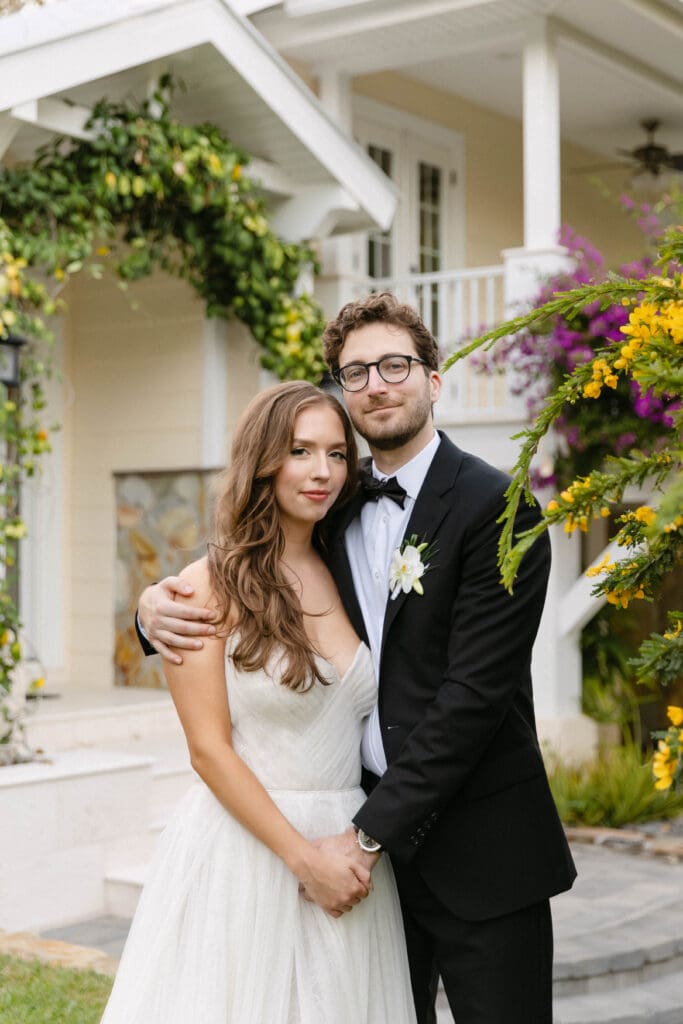 The property itself created the most stunning backdrop, with natural greenery and colorful tropical florals complementing the relaxed, joyful atmosphere of the day. From the quiet moments getting ready to the emotional portraits and celebration with their closest family and friends, every part of Olivia and Mike’s wedding felt intentional and meaningful.